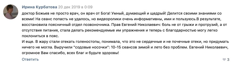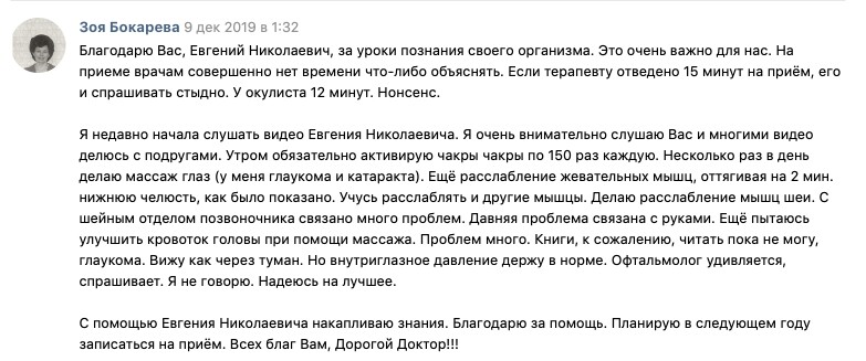 Часто думала об этом и как-то разговорились с коллегами на тему здоровья. Одна рассказала, что ее состояние гораздо улучшилось после упражнений доктора Божьева. Я полезла в интернет, почитала отзывы, внимательно изучила, что он рассказывает в Школе и решила туда записаться. Все дешевле, чем на таблетка разоряться. Вдруг поможет.
